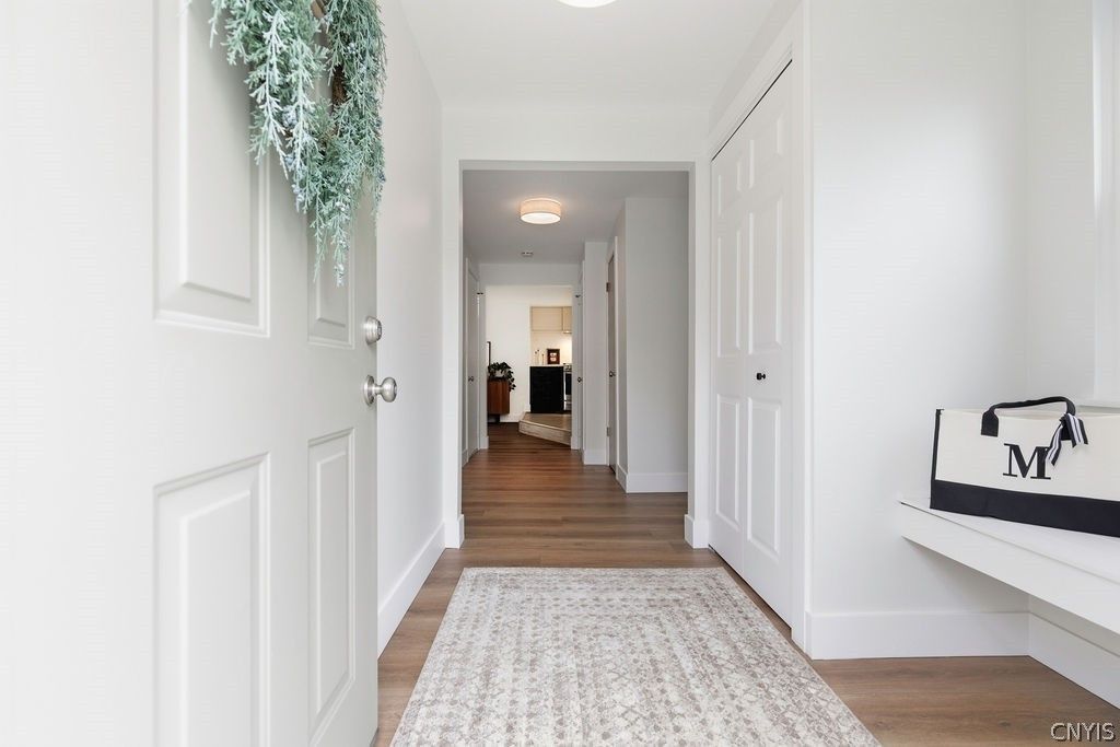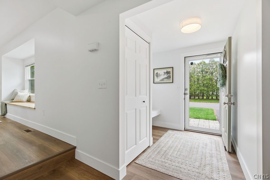 Clean lines, contemporary design, and stylish updates come together in this beautifully refreshed home offering almost 1,800 sq ft of bright, modern living space. With 3 bedrooms and 2.5 baths, this move-in-ready property delivers the perfect blend of comfort and sleek aesthetics. From the outside, you'll appreciate the thoughtful improvements including an architectural roof with new plywood and baffles (2025), vinyl windows, skylights that fill the home with natural light, and a private rear and side yard. Step inside to a fresh, modern interior featuring new luxury vinyl flooring throughout the first floor, all new carpeting upstairs, and recently completed neutral paint that complements any style. The show piece of the home is the fully renovated custom kitchen, showcasing a large quartz center island, Brookhaven cabinetry, quartz backsplash wall, pantry cabinet, and updated appliances-perfect for both everyday living and entertaining. The kitchen flows into the dining room and is open to a bright front living room with a newly installed window seat. Having a cathedral ceiling allows for the dramatic chandelier in the dining room that you can't seem to take your eyes off of! The inviting living area offers a private view of the back yard and a wood-burning fireplace with a new modern decorative surround adding both charm and function. Upstairs, the primary suite features double closets with new doors and a private bath with updated fixtures, while additional upgrades like new lighting, updated doors, and modern finishes throughout enhance the home's clean, contemporary feel. Mechanically updated with a new furnace and central air (2024), hot water heater (2023), and sump pump (2022), this home offers peace of mind and modern convenience. A GE front-load washer and dryer (2022) and dehumidifier are also included. This is a rare opportunity to own a thoughtfully updated contemporary home with a fresh, modern vibe-ready for you to move in and enjoy.